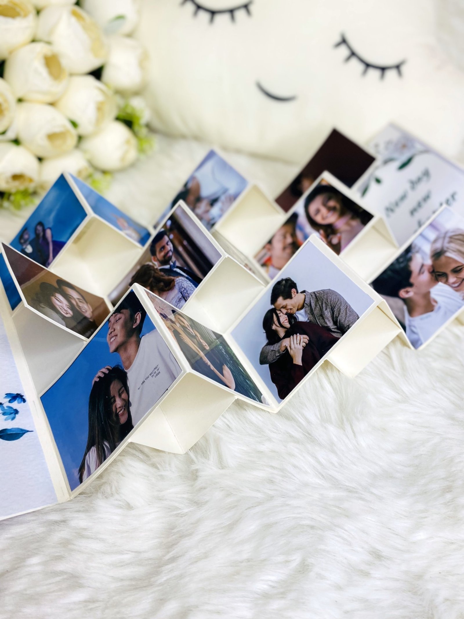 - Surprise your loved one with a Personalised Photo Pop-Up Greeting Card that combines creativity, thoughtfulness, and sentiment in one beautiful package. Featuring a unique pop-up design, this card brings your heartfelt message to life with a delightful 3D effect that adds a special touch to your gift. What sets this card apart is the option to personalise it with your favorite photo, making it a truly one-of-a-kind keepsake. Whether it’s a cherished memory, a funny moment, or a romantic snapshot, this custom element ensures your card is as unique as your relationship. Crafted with premium materials and meticulous attention to detail, this greeting card is designed to impress and last as a token of your love. Perfect for Valentine’s Day, anniversaries, birthdays, or just because, it’s a versatile way to show your appreciation and make your loved one feel extra special. Give the gift of love, creativity, and unforgettable memories with this personalised pop-up greeting card—a heartfelt keepsake that will be treasured forever. Express your love in a uniquely personal way with this beautifully crafted accordion-style greeting card. The elegant design features a romantic red and white colour scheme with delicate heart patterns and cascading rose details. This special card includes space for two cherished photographs, making it perfect for displaying treasured moments together. The centrepiece showcases a heartfelt message in striking red text, adorned with scattered heart motifs and a gorgeous rose border. The card's fold-out design creates an eye-catching display piece that stands beautifully on any surface. Ideal for Birthday / Anniversary occasion when you want to make your loved one feel extra special. The thoughtful combination of personalised photos and romantic sentiment makes this card a keepsake that will be treasured for years to come.