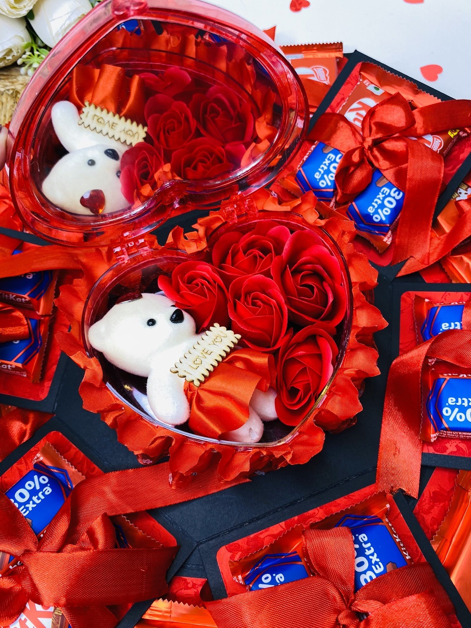 3 Layer Chocolate Explosion Gift Box For Couple Including 12 Chocolate (8 Kitkat Each 25 Rs & 4 Kitkat Each 10 Ra